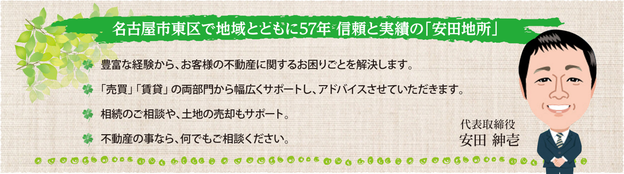 安田地所株式会社 愛知県名古屋市東区代官町17番23号TEL:052-932-1041FAX:052-931-0602 MAIL:info@yasudazisyo.jp